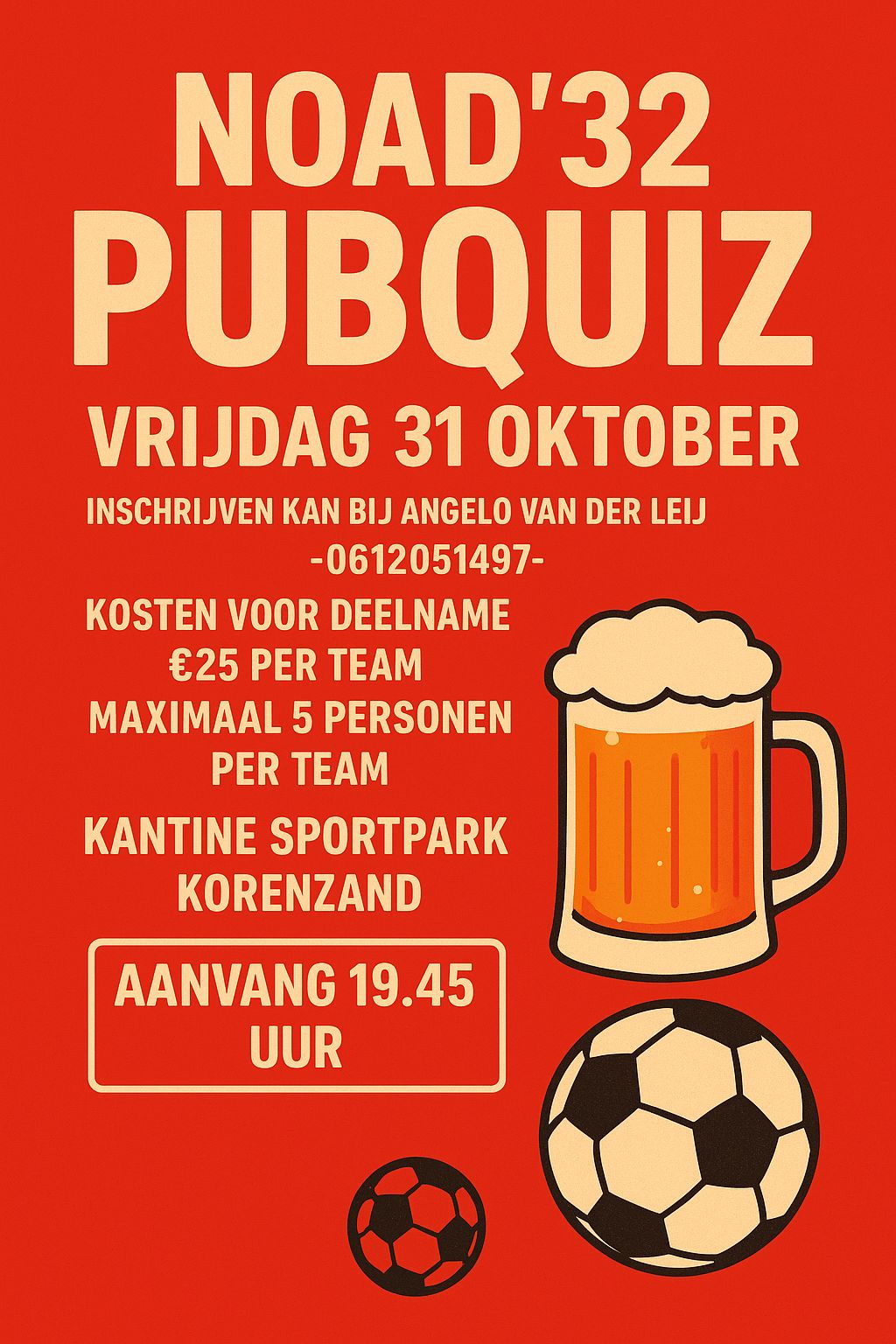 De NOAD’32 Pubquiz van vrijdag 31 oktober is inmiddels volgeboekt.