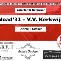 Aanstaande zaterdag speelt ons 1e elftal om 14.30 uur thuis tegen VV Kerkwijk. Na afloop van de wedstrijd zal het kantinefeest Noad Am See Beerfest plaatsvinden.