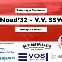 Aanstaande zaterdag om 14.30 uur spelen we thuis tegen V.V. SSW.
